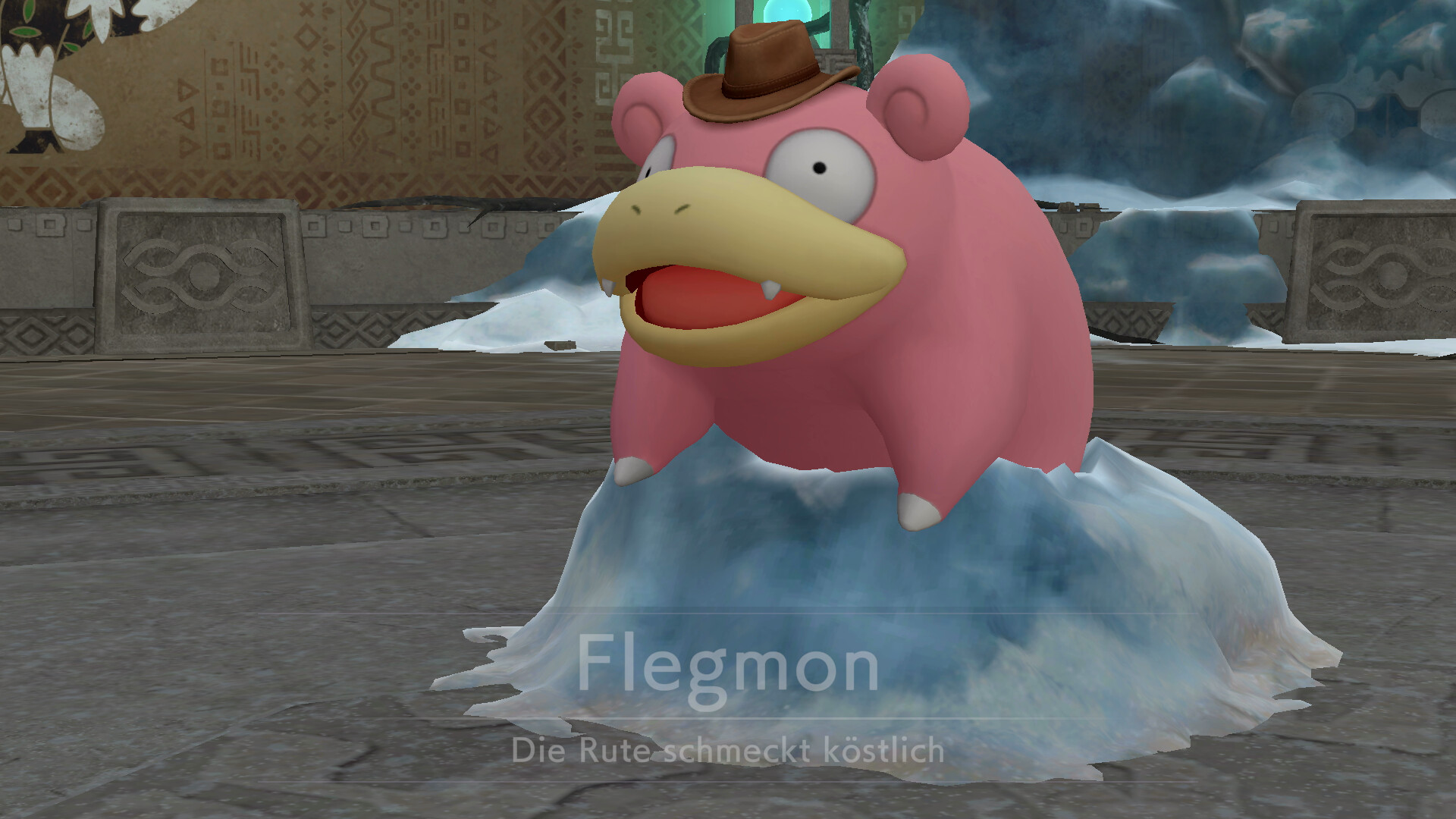 Geht also zu Galar-Flampivian zurück und lockt es an, indem ihr zum richtigen Zeitpunkt die A-Taste drückt. Galar-Flampivian beruhigt sich nachdem es die Flegmon-Rute gegessen hat und ist bereit euch zu helfen. Es setzt Pikachu auf seinen Kopf. Geht nun zu der Stelle mit dem verschütteten Gang zurück und drückt die R-Taste, um den Weg freizuräumen.