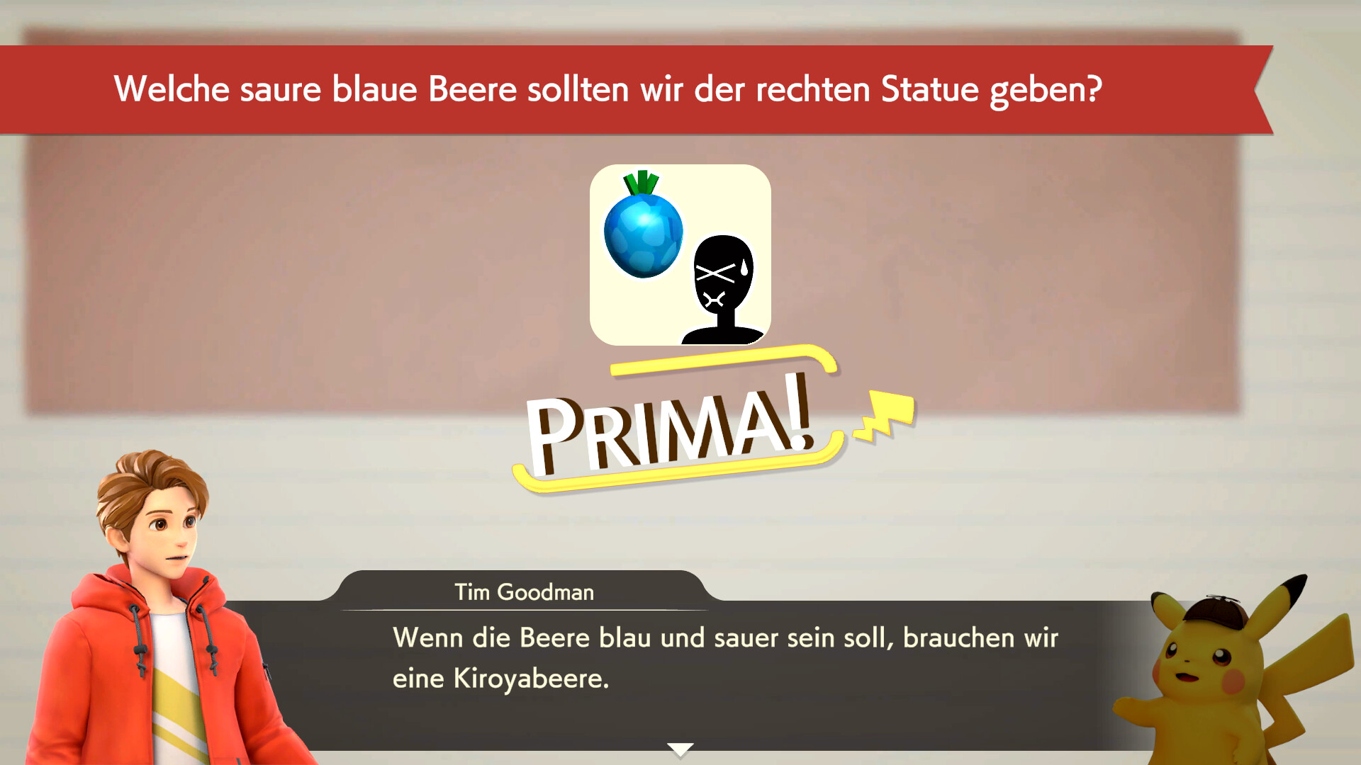 Antwort: Eine süße gelbe Schukebeere. - Welche saure blaue Beere sollten wir der rechten Statue geben?