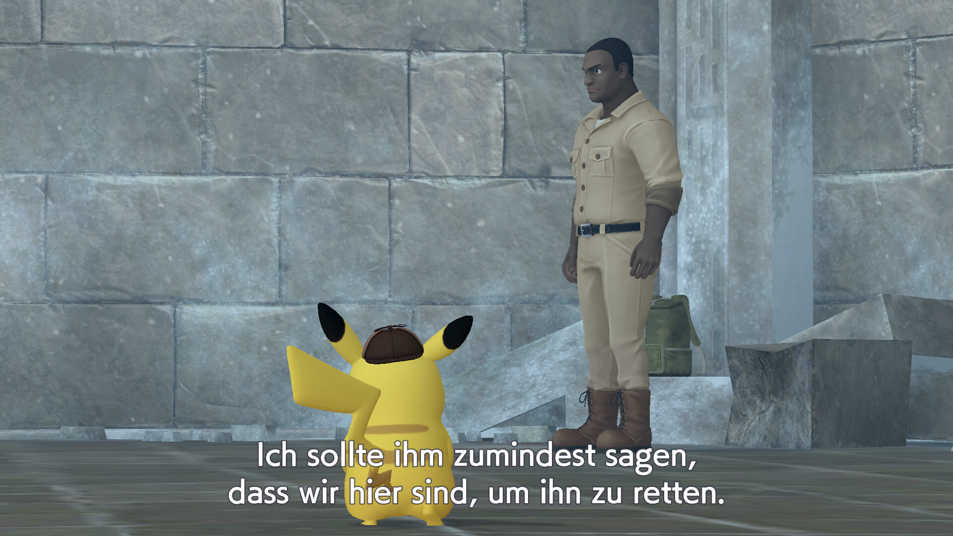 Folgt dem Weg bis zu einer Sackgasse und sucht nach einer Öffnung in der Wand. Diese befindet sich in der linken Wand des Raumes. Pikachu beschließt durch die kleine Öffnung hindurchzuklettern und trifft schließlich auf den Professor, der in dem Raum gefangen ist. Ihr wollt daher einen Ausgang aus dem Raum finden und müsst den Schutt im Süden des Raumes untersuchen. Leider passt der Professor dort nicht hindurch, sodass Pikachu auf einen neuen Plan kommt. Geht zu Tim zurück und sagt ihm, dass das Galar-Flampivian eine Hilfe sein kann, wenn dem Pokémon die Flegmon-Rute gegeben wird.