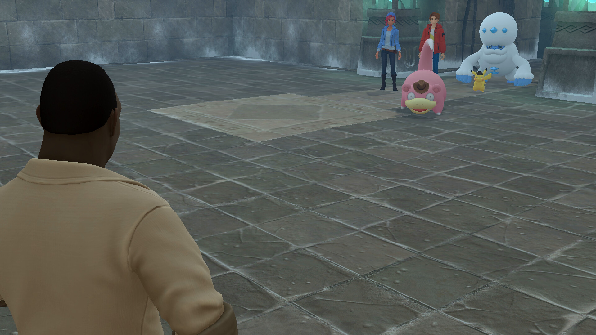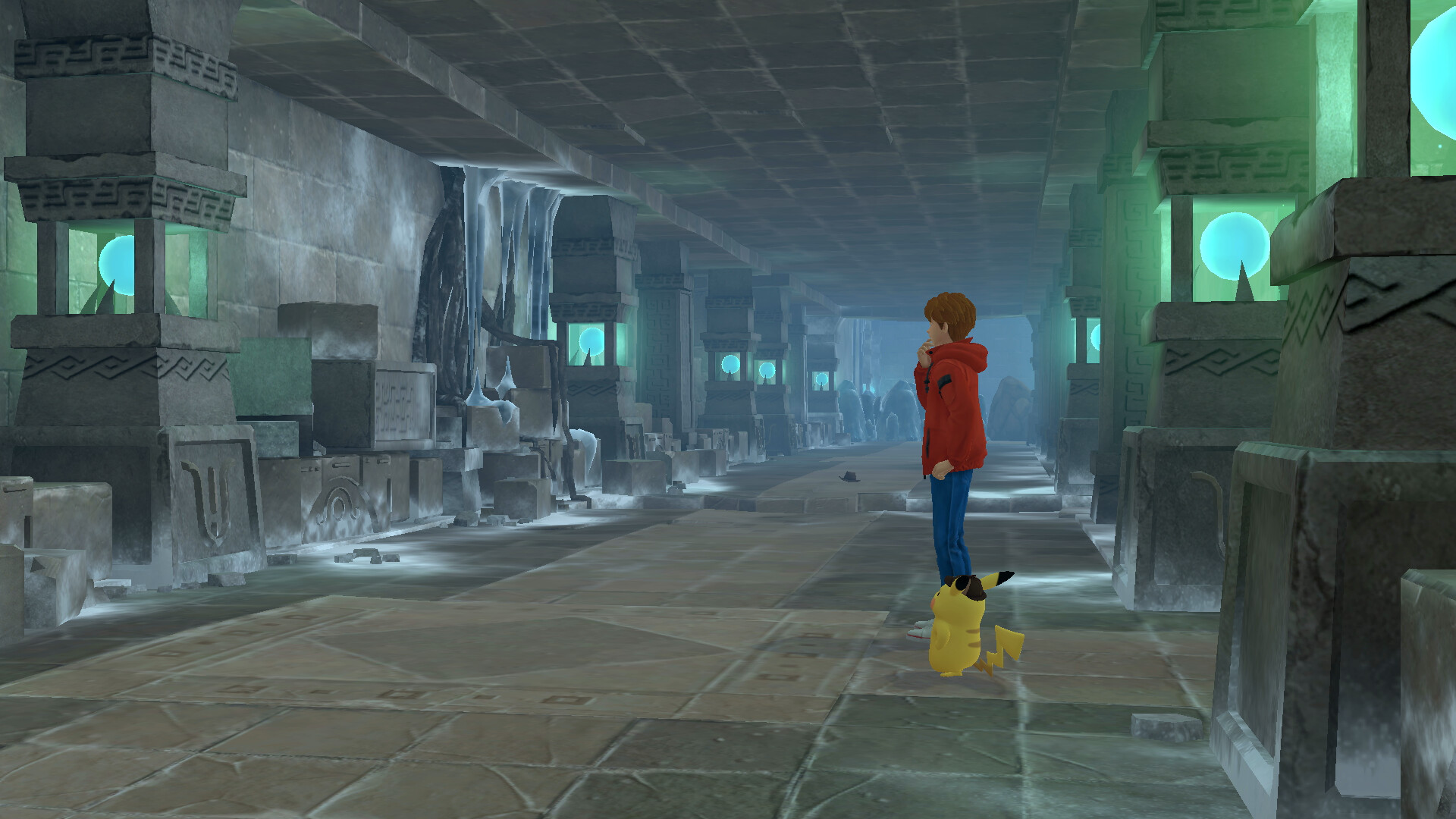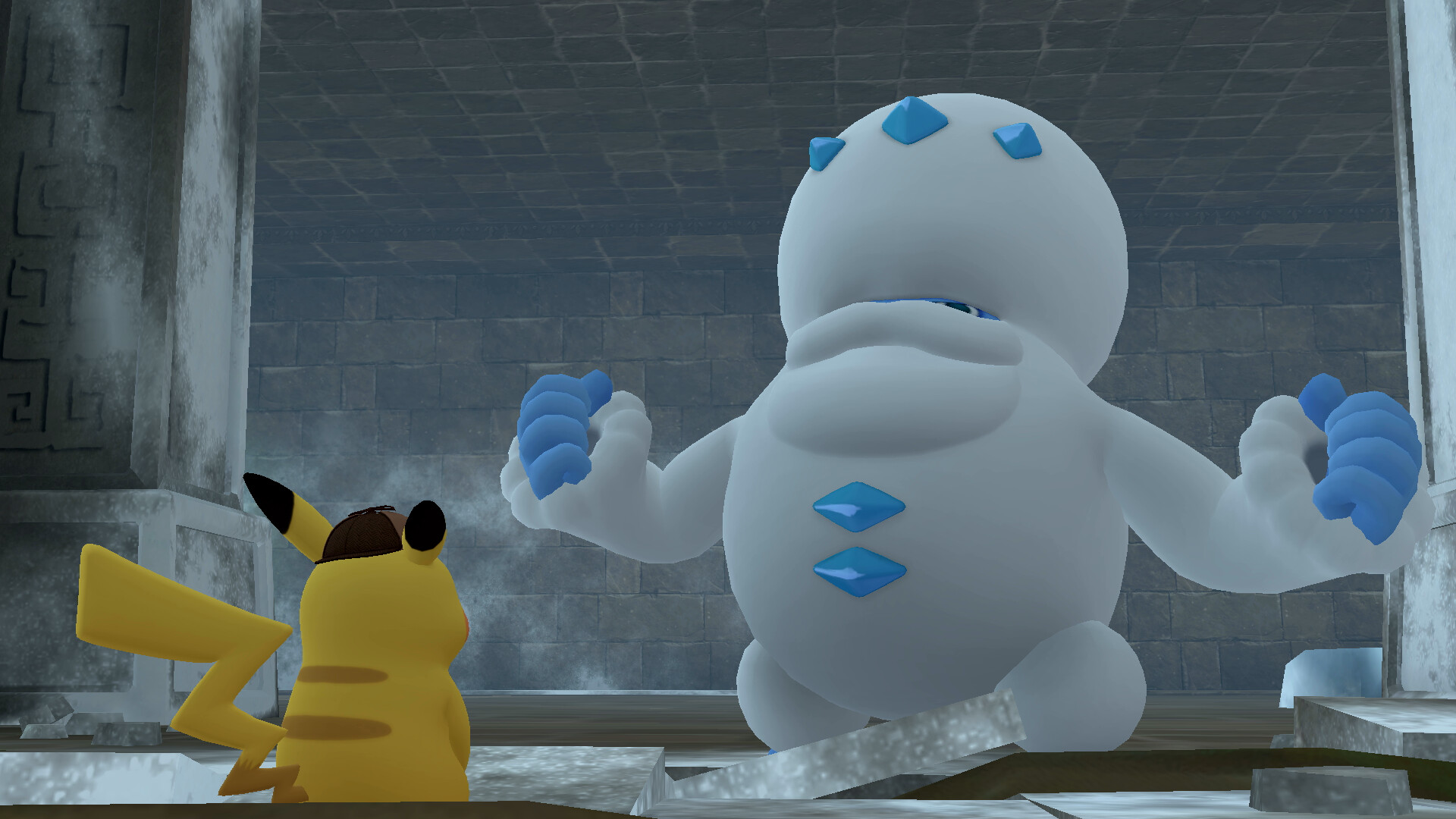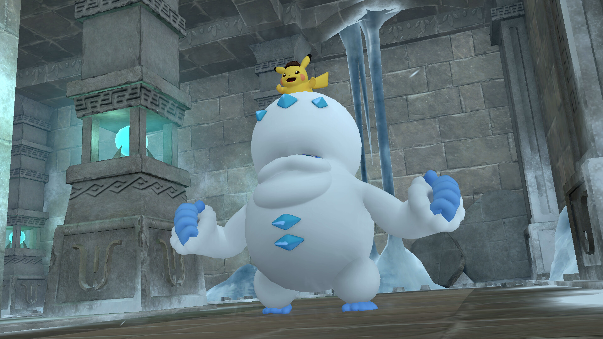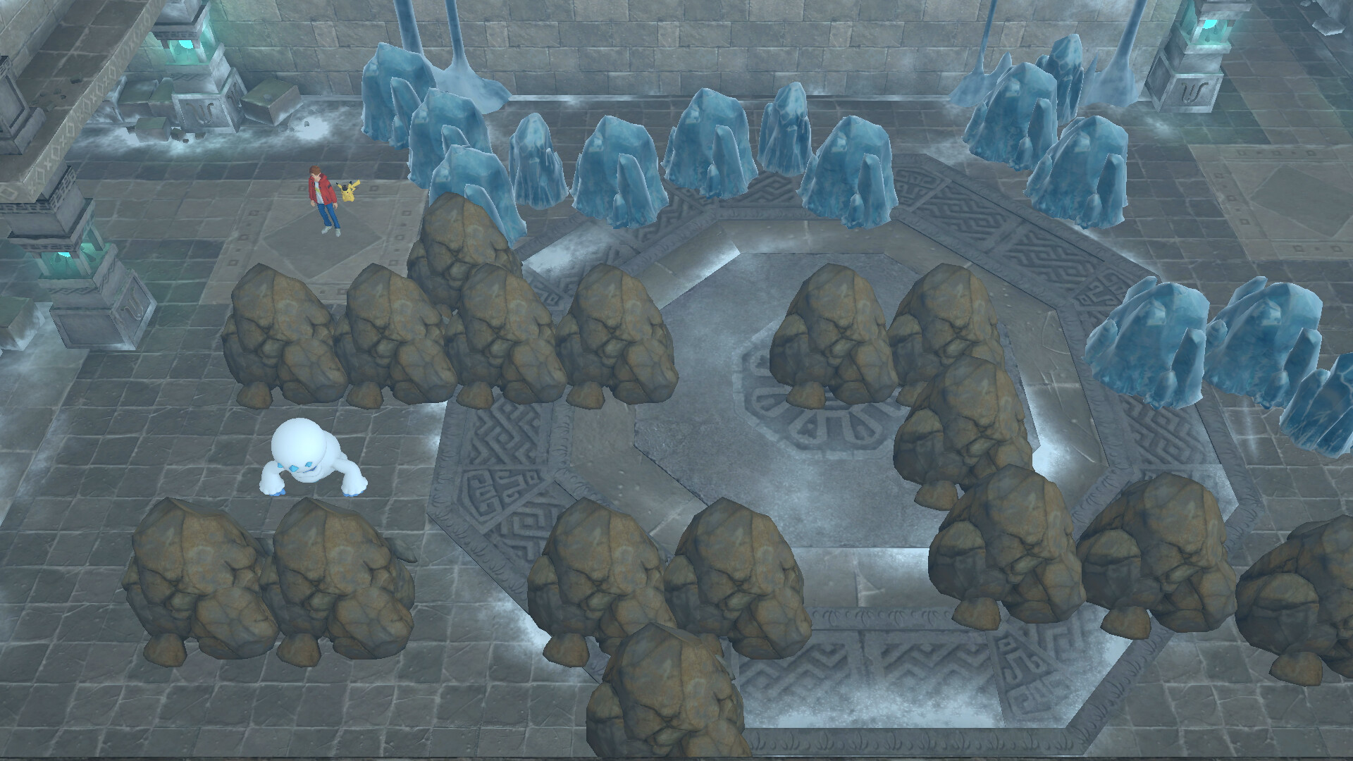 Nach dieser Schlussfolgerung gilt es nun den Raum gründlich zu untersuchen indem ihr euch die Eiswand noch einmal genauer anschaut. Pikachu erkennt schließlich, dass sich dahinter ein weiterer Raum mit einem Mechanismus befindet, der zu den Wandbildern passt. Dank Galar-Flampivian wird die Eiswand zerstört und der Weg in den hinteren Raum freigegeben.