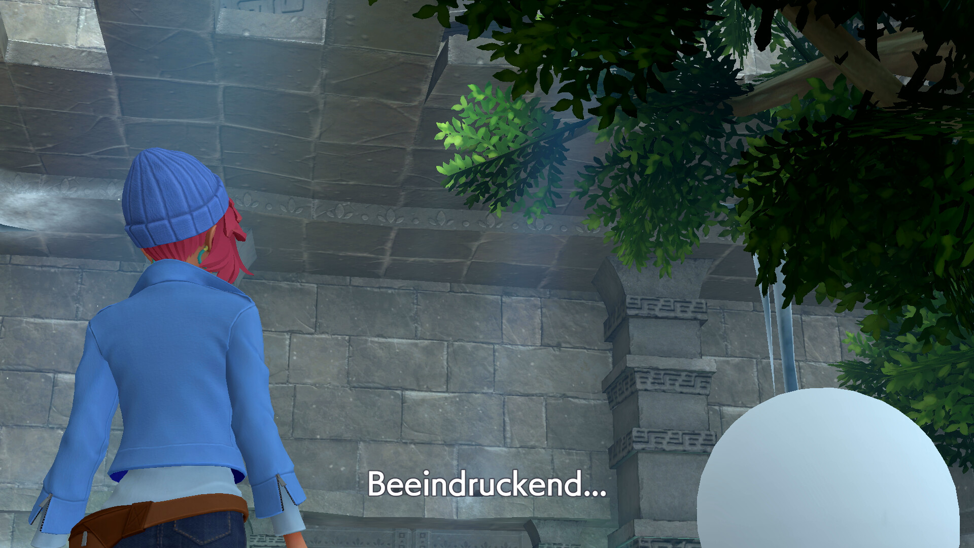 Mit dem Ersatz für die dritte Beere, könnt ihr nun eure Lösung direkt ausprobieren und damit erfolgreich die Tür in den Ruinen öffnen. Zu viert, mit Rachel und Flegmon, das sich euch nun angeschlossen hat, da es sich Sorgen um den Professor macht, könnt ihr nun tiefer in die Ruinen vordringen.