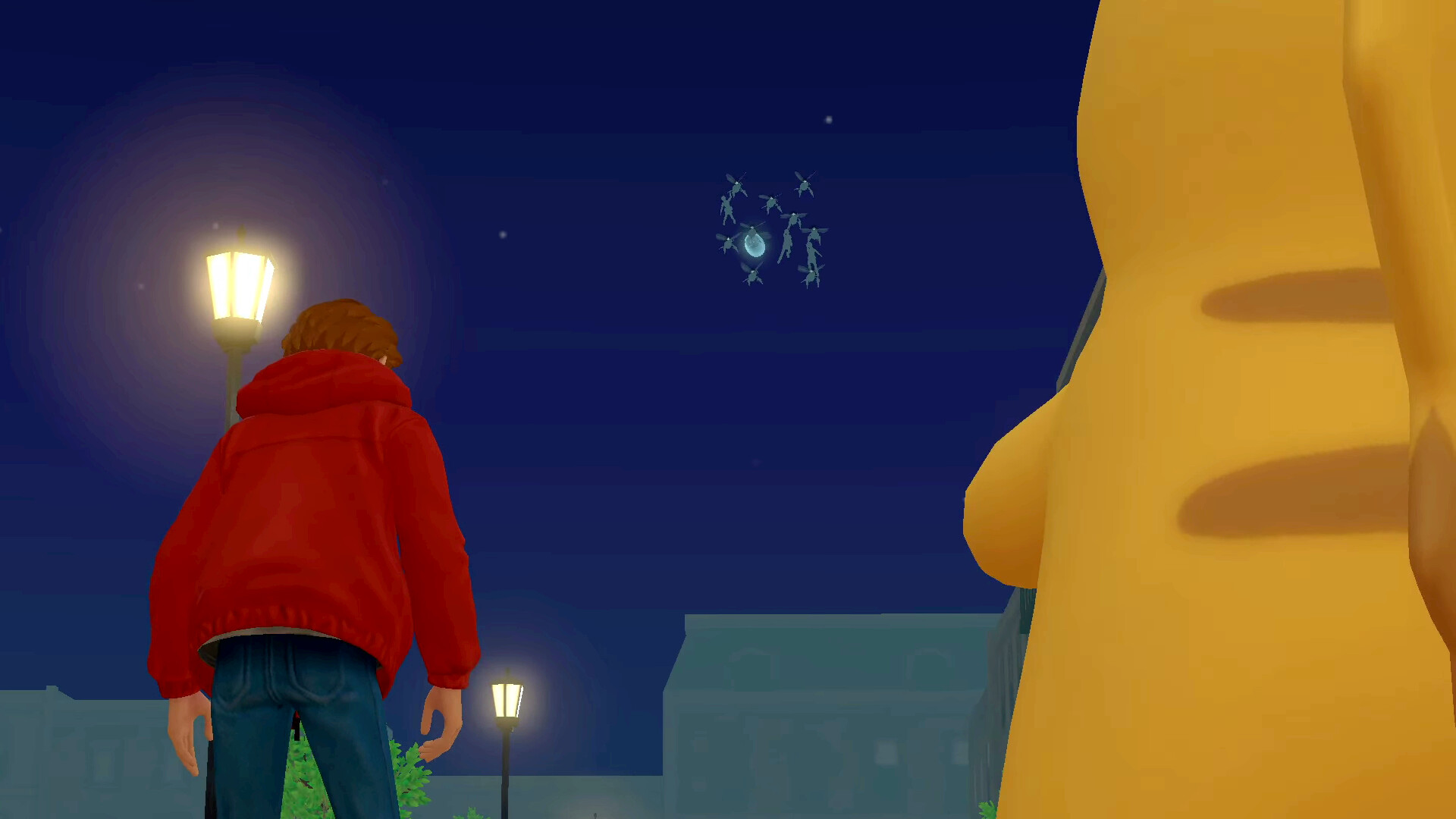 Nachts kommt ihr in der Stadt an und seht plötzlich Mewtu, verfolgt von Bibor, am Himmel. Das Pokémon scheint keine Kraft mehr zu haben und stürzt in die Straße der Stadt ab. Bei Mewtu befindet sich Harry Goodman, der jedoch nicht ansprechbar ist und von zwei unbekannten Personen in umringt ist. Die Bibor werden dazu aufgefordert Tim Goodman anzugreifen, doch Mewtu schafft es mit letzter Kraft die Nadelraketen zurückzulenken und die Angreifer so in die Flucht zu schlagen. Jedoch schaffen sie es Harry mitzunehmen und zu kidnappen. Mewtu sagt euch, dass ihr euch um Harry keine Sorgen machen müsst und verschwindet daraufhin wieder, nachdem es sich von den mysteriösen kleinen Boxen befreit hat, die auch an Mamutel und Urgl hafteten. Ihr nehmt euch vor Kommissar Holiday zu treffen, um mit ihm über alles zu reden.