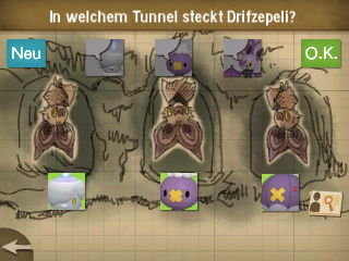 Untersucht zunächst den zugeschüteten Eingang, indem ihr erst die Lichtel um etwas Licht bittet und dann die Steine untersucht. Sprecht im Anschluss mit den anderen Personen in der Höhle. Anschließend bemerkt Pikachu, dass sich in der Höhle ein großes Loch in der Decke befindet. Sprecht danach Meiko an, die euch eure Aufnahme zur Verfügung stellt, um ein fliegende Pokémon zu finden.