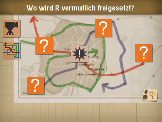 Kombiniert danach die Hinweise und findet heraus, dass R am Zentralplaza freigesetzt werden soll.