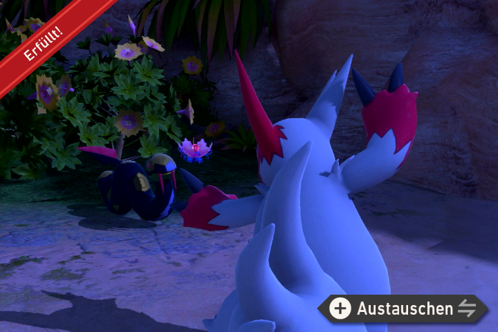 - Nehmt die Alternativroute mit Wummer und fahrt zu der Stelle bei der Perlu im Boden sind. Werft einem Lumineon Samtäpfel zum Essen hin, sodass es zu einem roten Juwel gelockt wird. Starmie erscheint daraufhin aus dem Boden und schwimmt mit Lumineon weg. Fahrt den beiden hinterher bis sie neben einer Kristallblume stehen bleiben. Werft eine Lumina-Kugel auf die Blume und macht ein Foto von Starmie.