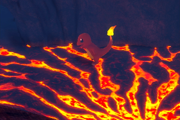 - ODER Brodelnder Vulkan - Vulkan: Nehmt in der Höhle den rechten Weg in Richtung der blauen Lava und werft im Raum vor der blauen Lava eine Lumina-Kugel auf ein Glumanda im Krater. Macht ein Foto von dem Pokémon, während es in der Mitte ruft.