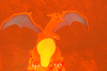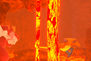 - Brodelnder Vulkan - Vulkan: Fahrt in den Teil des Vulkans in dem rote Lava ist und macht ein Foto von Glurak während es an Monargoras vorbei fliegt.