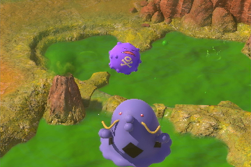- Trockenes Ödland (Tag): Nehmt in Stufe 3 den Alternativweg, indem ihr die Kristallblume an dem runden Felsen aktiviert. Fahrt den Weg entlang, bis ihr den Vulkan aus Gift hinter den drei Flemmli einsehen könnt. Bewerft das Amfira in dem Vulkan mit einem Apfel, damit ein Smogon erscheint. Das Smogon wird zu Schlukwech fliegen und dort verschluckt werden. Macht ein Foto von Smogon wenn es wieder ausgespuckt wird.