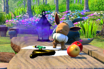 - Basiscamp: Wenn Evoli und Unratütox auf dem Tisch sitzen (Anfang von den Neo-Ones), werft einen Samtapfel auf Unratütox. Dieses setzt sein Gift auf Evoli frei.