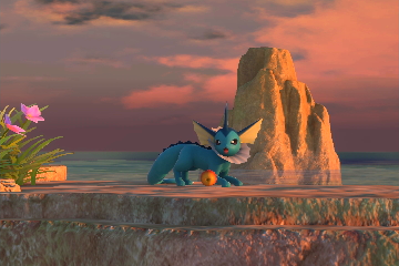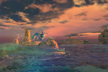 - Copia-Riff - Riff (Abend): Fahrt bis auf die freie Fläche nach dem Strudel, an Wailord und Primarene vorbei bis hinter den nächsten kleinen Felsen nach Primarene. Setzt Musik ein, damit Aquana aus dem Wasser springt und fotografiert es im Flug.