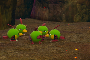 - ODER Ruinen des Schutzes - Ruinen: Fahrt den Weg bis zu dem Platz entlang auf dem sich einige Cottomi befinden. Werft einen Samtapfel links oben auf den Felsen, damit ein Natu erscheint. Lockt das Natu zu dem Cottomi in der Nähe des Lochs, damit das Natu sich freut.