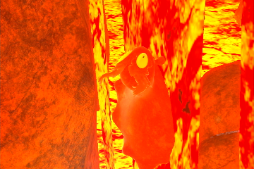 - Brodelnder Vulkan - Vulkan: Fahrt den Standardweg entlang in den Teil der Höhle mit roter Lava und dreht euch bei Betreten der Höhle direkt nach links, um ein Schneckmag zu fotografieren, das einen Lavafall hinunterschwimmt.