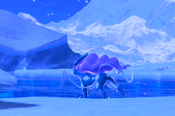 - Frostiges Schneefeld - Schneefeld (Nacht): Nehmt den Alternativweg durch die Schneewand und anschließend durch die zweite Schneewand. Fahrt durch die Eishöhle bis zum freien Schneefeld und wert eine Lumina-Kugel auf Rossana das auf Arktilas steht, sodass es anfängt Suicune zu beschwören. Nach etwas Verzögerung wird Suicune rechts von Rossana und Arktilas auftauchen. Macht ein Foto von dem Pokémon.