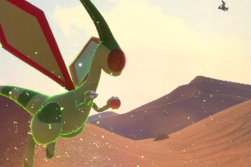 - Sengende Sandwüste - Wüste (Tag): Bewerft die drei Kristallblumen, die rund um den Sandsturm herum sind, um ein Libelldra zu finden. Bewerft es mit einer Lumina-Kugel und setzt anschließend einen Scan ein, damit es kurz inne hält. Werft dann einen Apfel gegen Libelldra, damit es diesen aufheben kann. Macht in diesem Moment ein Foto.