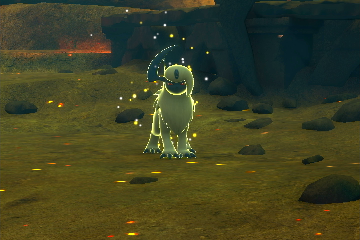 - Ruinen des Schutzes - Ruinen: Fahrt in Richtung der Ruine und werft einen Samtapfel gegen das UHaFnir kurz vor dem Eingang zum Innenraum. Werft anschließend einen Samtapfel in den Gang nach links, damit Molunk und Nachtara erscheinen. Fahrt anschließend einmal komplett um die große Säule im Innenraum und weckt Nachtara am gelben Brunnen mit zwei Lumina-Kugeln auf. Macht ein Foto davon wie Absol sich mit Nachtara unterhält.