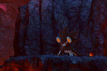 - Brodelnder Vulkan - Vulkan: Werft in Level 3 eine Lumina-Kugel am Ende der blauen Höhle auf Luxtra, damit es anfängt zu leuchten und macht ein Foto von dem Pokémon