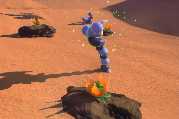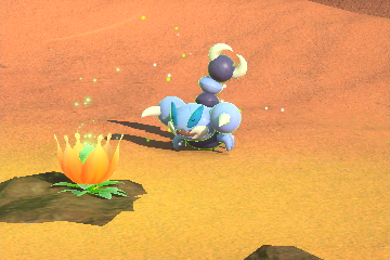 - Sengende Sandwüste - Wüste (Tag): Werft Lumina-Kugeln auf die Kristallblumen rund um den ersten Sandsturm und werft anschließend eine Lumina-Kugel auf das Pionskora, was sich ausgräbt, nachdem der Sturm vorbei ist.
