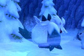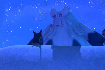 - Frostiges Schneefeld - Schneefeld (Nacht): Fahrt den Standardweg entlang und an der großen Felsspalte vorbei. Bewerft Wiesenior und Rexblisar, die beide auf einem Abhang stehen, mit einer Lumina-Kugel und macht ein Foto von Rexblisar, wenn es anfängt rumzulaufen.
