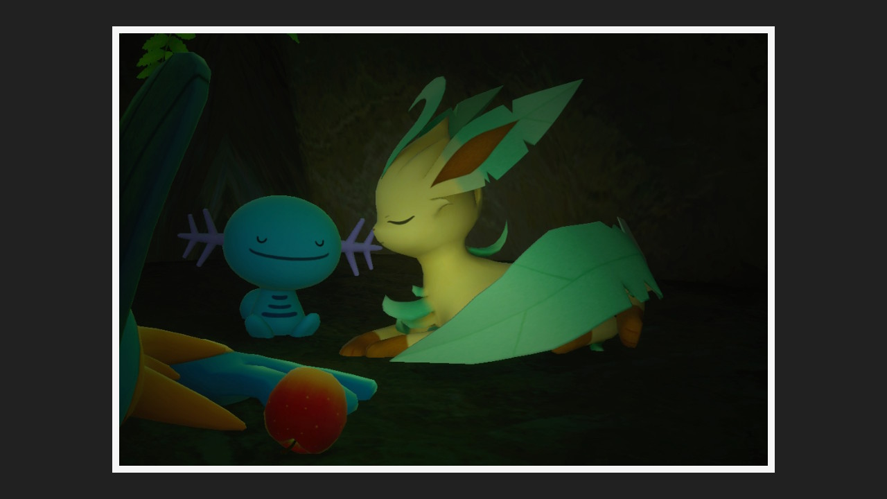 - Dichter Dschungel - Dschungel (Tag): Verhindert, dass Kleoparda vor dem Wasserfall schläft, indem ihr von dem Ast aus einen Lumina-Orb auf es werft, wenn es sich gerade hinlegen will. Fahrt hinter dem Wasserfall entlang und macht ein Foto von Folipurba in dem Moment als es von Memmeons Tränen (einen Apfel gegen Memmeon werfen) getroffen wurde oder es sich freut Memmeon zu sehen.