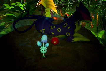 - Dichter Dschungel - Dschungel (Nacht): Werft das Arbok mit Samtäpfeln von dem Baum. Werft dann eine Lumina-Kugel auf das Kleoparda, das sich weit oben in einem Baum befindet, welcher hinter der Stelle liegt, an der man mit dem Neo-One über einen Ast fährt. Das Kleoparda muss aufgeweckt werden indem man zusätzlich noch Musik spielt, wenn es getroffen wurde. Das Kleoparda und drei weitere finden sich anschließend in der Nähe des Sumpfes wieder und stellen sich auf die Hinterbeine.