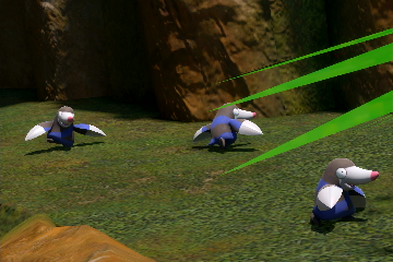 - Großer Fluss (Tag): Fahrt auf Stufe 3 bis zu der Stelle an der Sumpex und Morlord schlafen und setzt ein paar Mal Musik ein, damit die Rotomurf auf den Felsen sich erst freuen und dann in den Boden bohren. Fahrt ein kleines Stück weiter und schaut nach links in den Busch. Dort werden mehrere Rotomurf durch die Luft fliegen. Macht ein Foto davon.