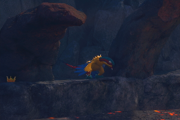 - ODER Brodelnder Vulkan - Vulkan: Geht den Standardweg in die Höhle mit der roten Lava und bewerft das Aeropteryx mit einer Lumina-Kugel. Macht ein Foto, wenn es schreit.