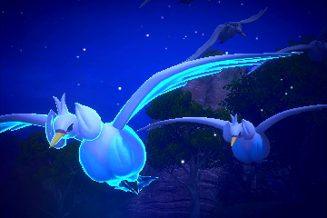 - Floreo-Naturpark - Park (Nacht): Beobachtet, wie leuchtende Swaroness auf dem großen See landen und spielt anschließend Musik, damit sie wieder los fliegen. Die fliegenden Pokémon können dann fotografiert werden.