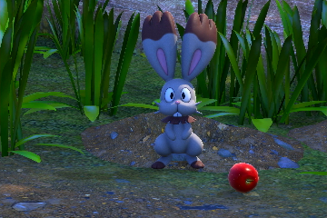 - Basiscamp: Startet am Neo-One und fahrt bis zu den drei Löchern neben dem Campingfeuer. Werft eine Lumina-Kugel auf das Pokémon und trefft die Ohren von Scoppel mit einem Samtapfel, damit es besonders hoch aus dem Loch springt. Fotografiert es während es springt.