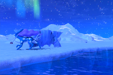 - Frostiges Schneefeld - Schneefeld (Nacht): Fahrt den Alternativweg durch die Schneewand entlang und fahrt auch durch die zweite Wand aus Schnee am Ende des ersten Alternativweges. Fahrt aus der Eishöhle heraus und macht ein Foto von dem Arktilas, das mit Rossana weg schwimmt.