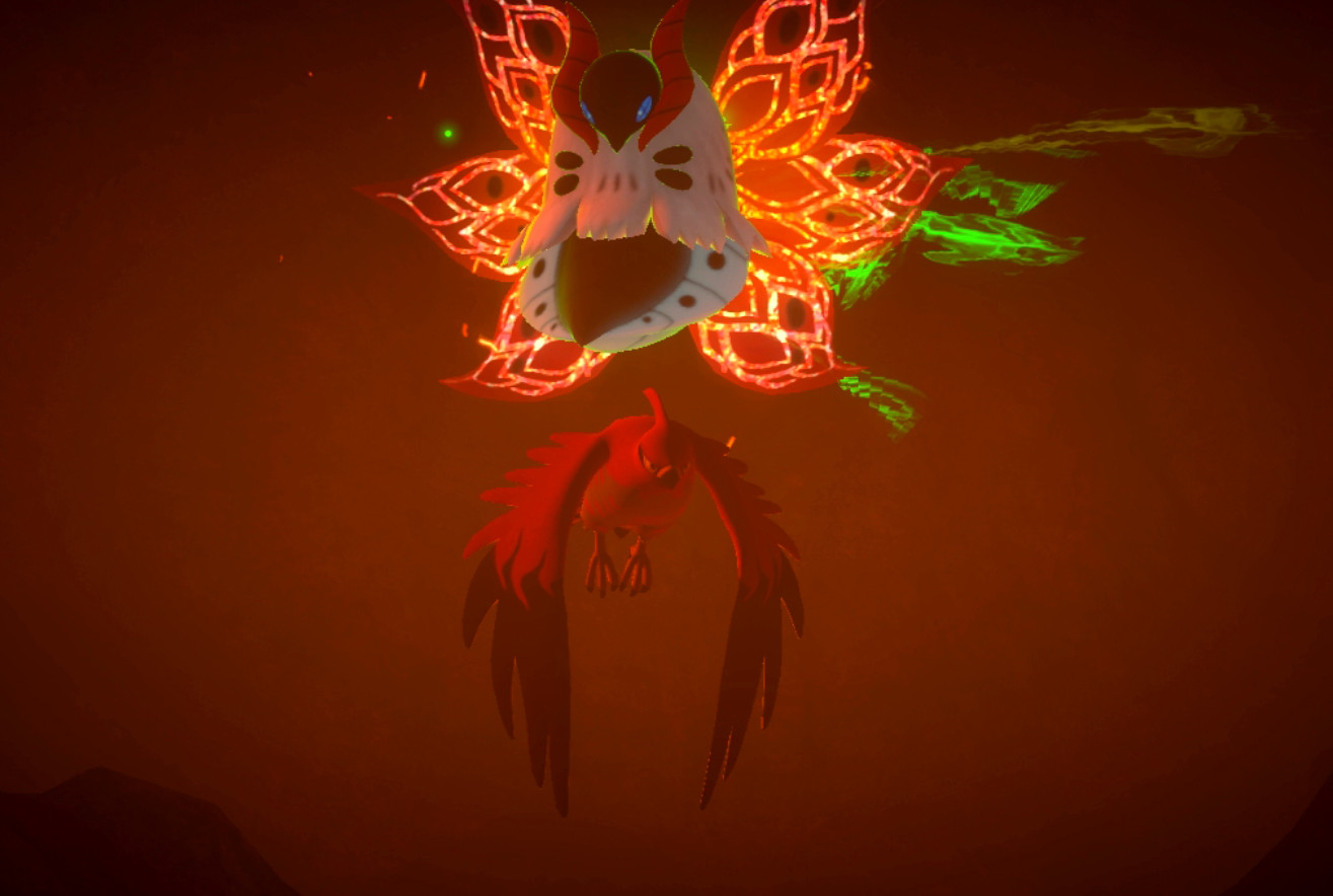 Linkes Ramoth mit einem Samtapfel bewerfen und anschließend mit Lumina-Kugeln zum Leuchten bringen. Danach Panpyro mit einer Lumina-Kugel treffen. Anschließend im Tunnel zum zweiten Bereich das Ramoth erst mit einem Samtapfel treffen und anschließend mit einer Lumina-Kugel. Fiaro taucht dann neben dem zweiten Ramoth auf. Beide befinden sich auf der Seite des Tunnels, in dem man hineingefahren ist.