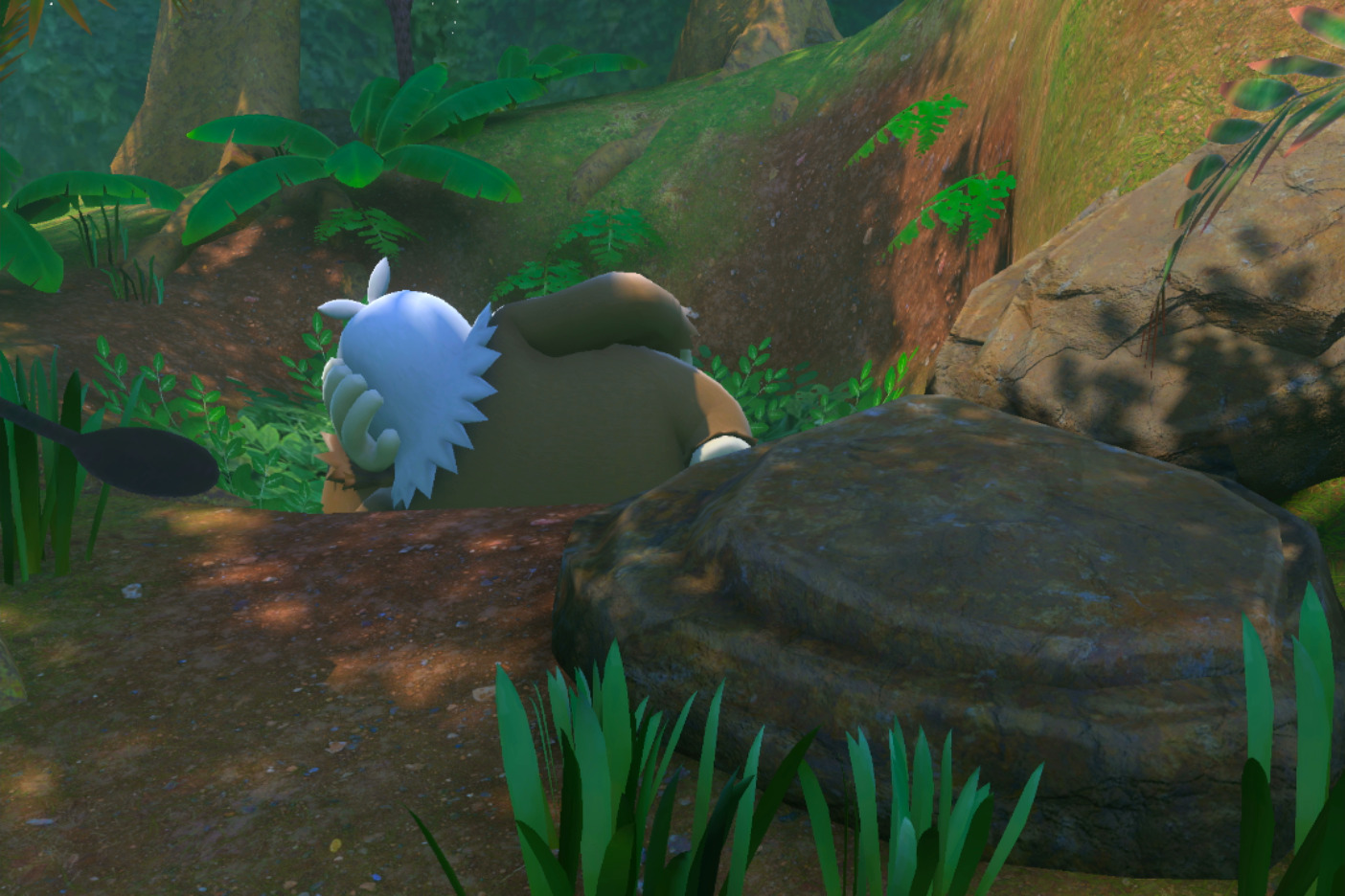 Für den zweiten Weg ist müsst ihr den Weg in der Nacht-Version Dichter Dschungel (Dschungel (Tag)) freischalten. Vor dem Teich mit den Morlord kommt hohes Gras mit einer Kristallblume. Werft die Kristallblume mit einer Lumina-Kugel ab. Es erscheinen Fußspuren die ihr scannen könnt. Es erscheint dann der alternative Weg zur Auswahl. Der Weg führt auf der anderen Seite des Teiches herum. Seid ihr einmal den Weg in der Nacht-Version gefahren, könnt ihr diesen auch in der Tag-Version finden.