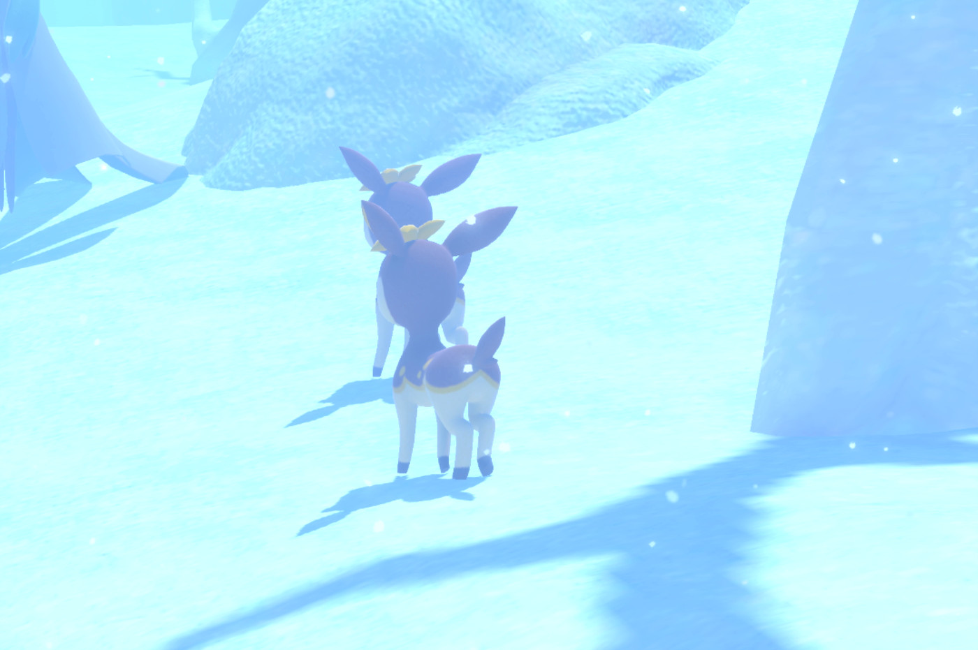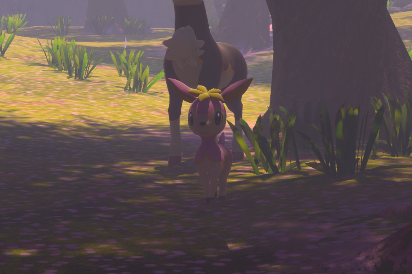 aufgetaucht sind müsst ihr Musik einsetzen. Von dem Weg aus dem ein Kronjuwild erscheint, fliegen dann drei Vivillon aus den Büschen und dann über den