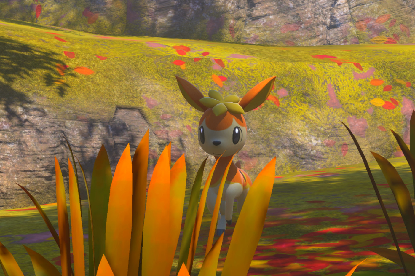 Gebt Psiana einen Samtapfel und bewerft es mit einer Lumina-Kugel, damit es auf einen Felsen springt und sich dort putzt. Werft wieder eine Lumina-Kugel