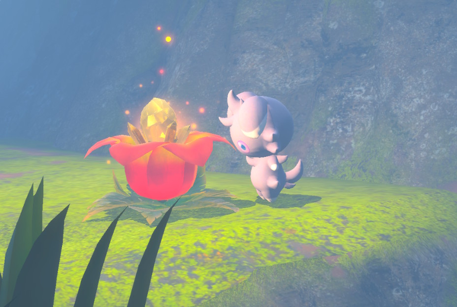 und vierten Kristallblume kommt, bewerft nur die hintere Blume. Fahrt dann weiter und bewerft die nächste Blume, um Psiana, Sesokitz und Kronjuwild