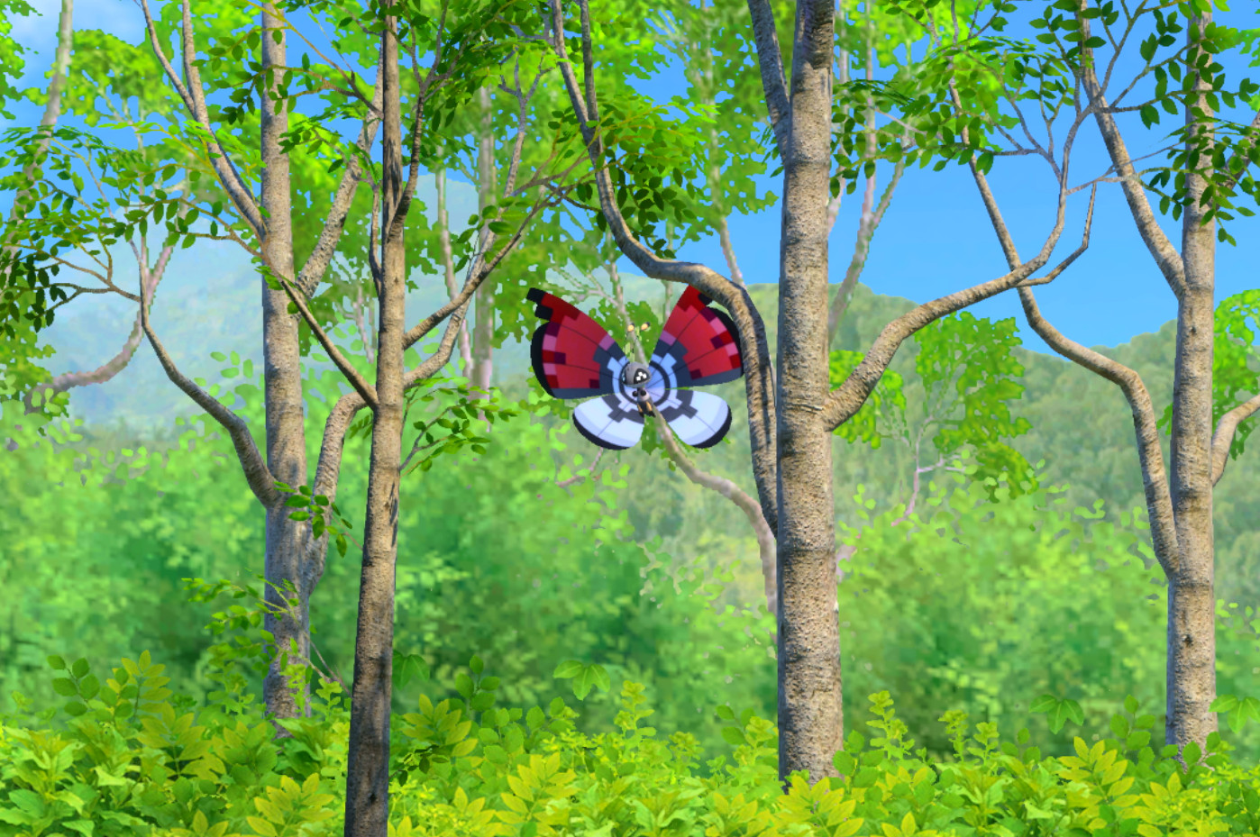 nach hinten, um das normale Vivillon mit einem Ziergarten-Vivillon spielen zu sehen