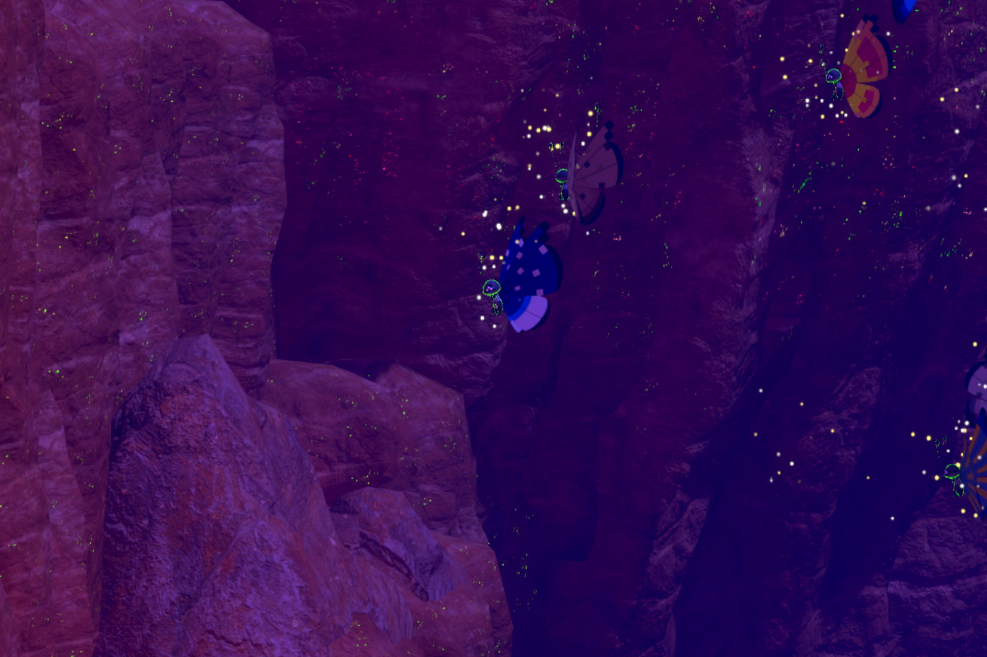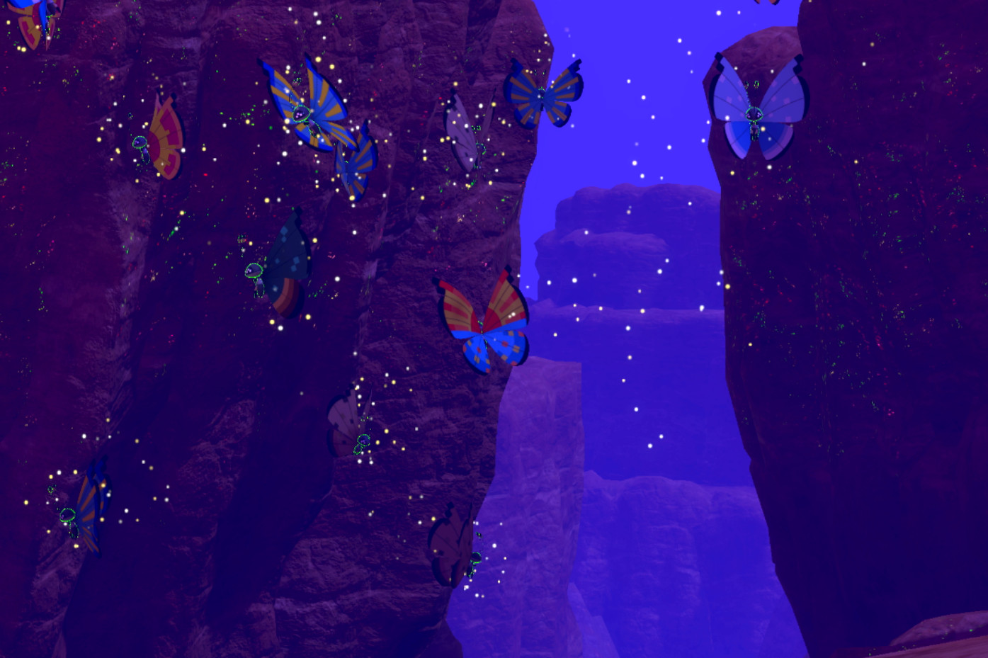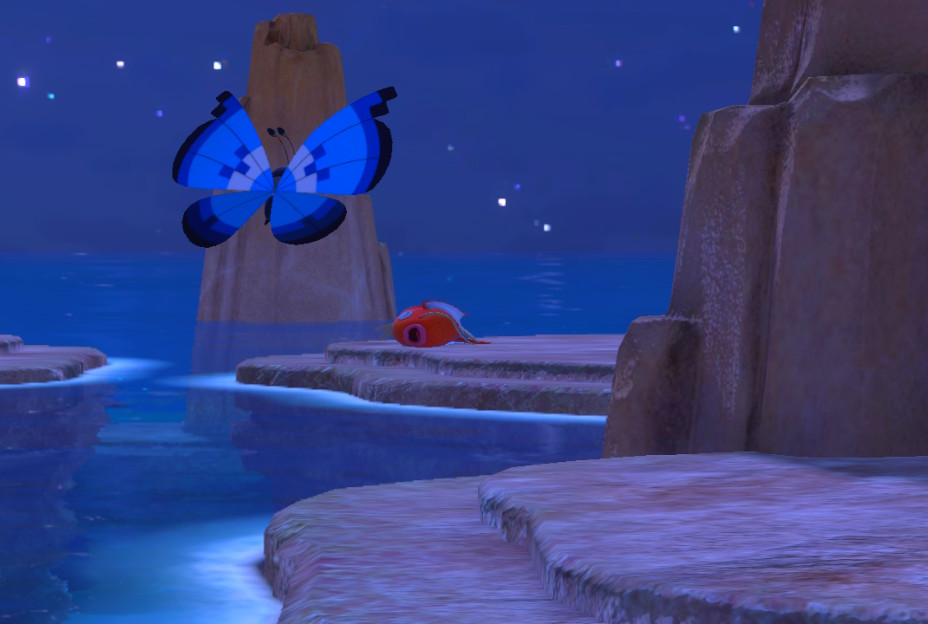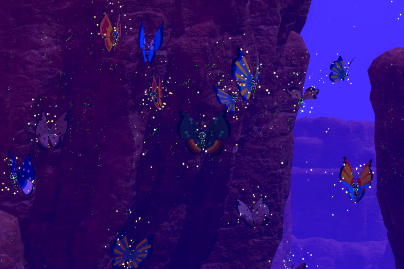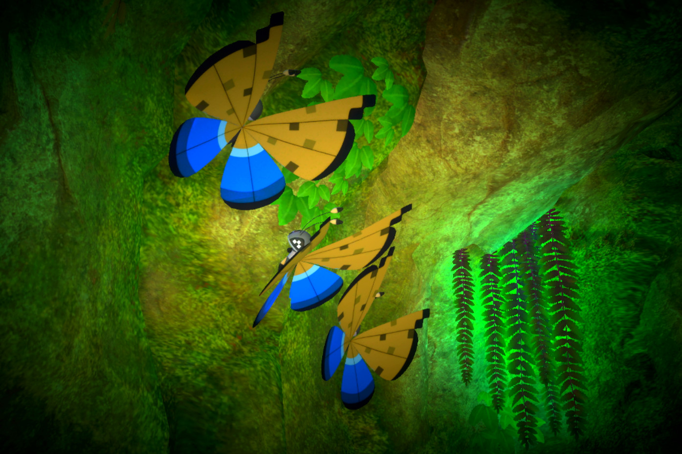 Nehmt den Weg in die Kristallkammer und fahrt dort bis zu dem Teil mit den Pflanzen. Dort fliegen Vivillon durch die Luft.