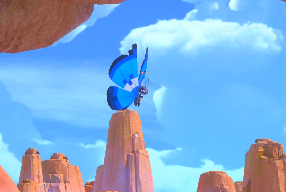 eine Attacke zu zeigen. Schaut dann nach rechts in den Himmel, um Vivillon fliegen zu sehen.