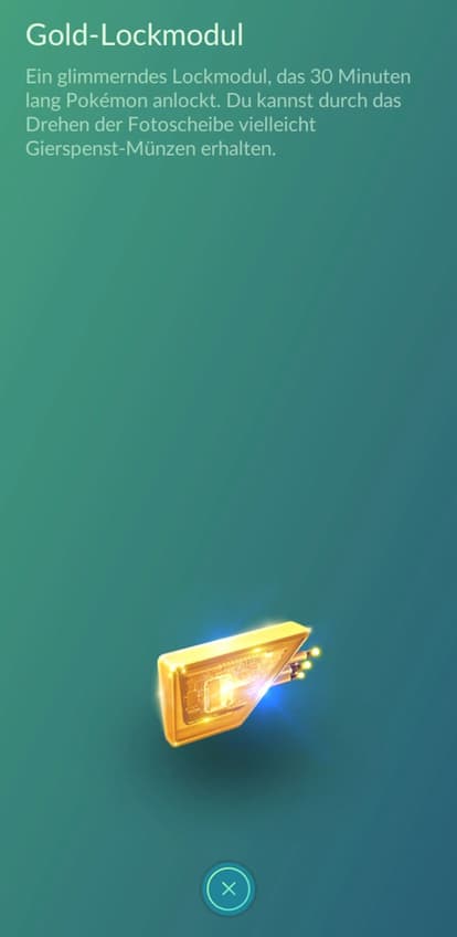 Werden zudem mehrere Postkarten an Karmesin und Purpur geschickt, kann irgendwann ein besonderes goldenes Lockmodul erhalten werden. Dieses kann an einem PokéStop eingestet werden, um den PokéStop zu einem goldenen PokéStop zu machen. Goldene PokéStops verteilen beim Drehen Gierspenst-Münzen, die benötigt werden, um Gierspenst zu entwickeln. Mit viel Glück können in der Nähe von goldenen PokéStops auch Gierspenst auftauchen und gefangen werden.