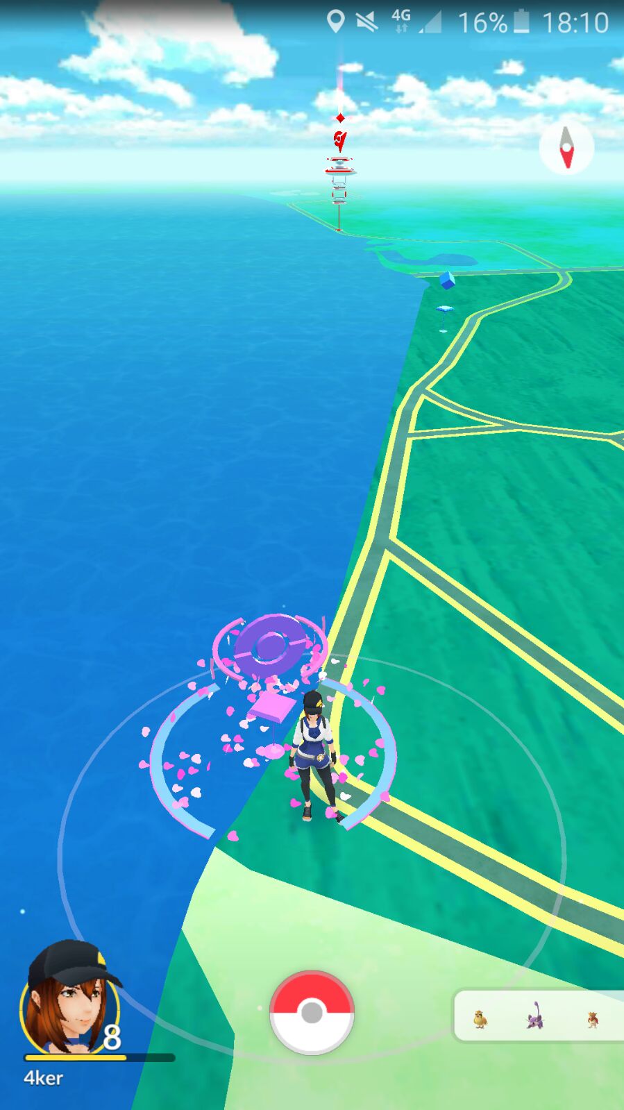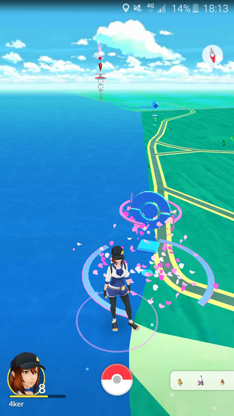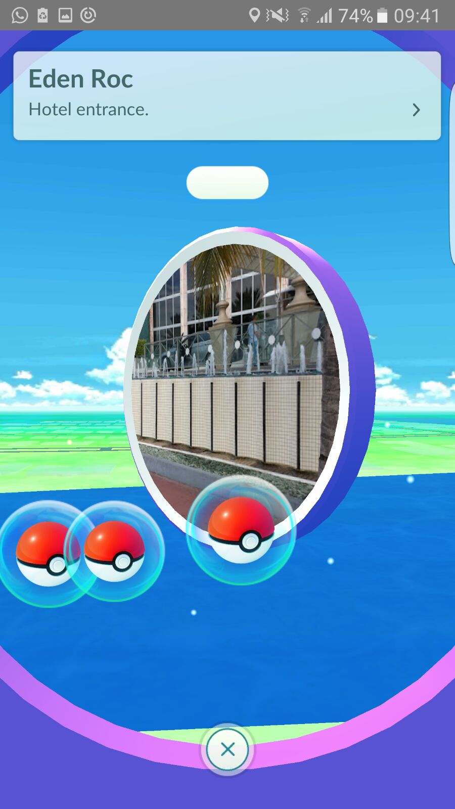 Nähert ihr euch einem PokéStop, ändert er auf der Karte sein Aussehen. Aus dem Würfel formt sich ein Pokéball, tippt ihr diesen an, seht ihr in der Mitte ein Bild des jeweiligen Stops, das ihr nach links oder rechts drehen könnt. Wird dies getan bekommt ihr 3 bis 7 zufällige Items in Luftblasen angezeigt. Tippt ihr diese an erhaltet ihr die jeweiligen Items in den Beutel - ein Klick auf das x befördert automatisch alle Items in euren Besitz.
