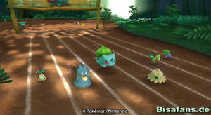 Gleich am Anfang der Grünzone siehst du Haspiror und Endivie. Diese empfehlen dir nach oben bis zum Schild zu gehen, wo es ein Minispiel geben soll. Tue dies und gehe bis du Bisasam und sein Minispiel "Schüttelsprint mit Bisasam" findest. Allerdings weigert sich Bisasam zuerst dich spielen zu lassen, da der Chef der Grünzone, Bisaflor, dies verboten hat. Weil du es bist, macht Bisasam aber eine Ausnahme, so dass du letztlich doch spielen darfst.
