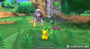 Hast du dies geschafft, lernst du Haspiror kennen, die dir erklärt, wie du mit Pokémon reden kannst (Button 2) und wie du deinen Donnerblitz (Button A) einsetzen kannst. Wecke nach der Erklärung von Haspiror das Relaxo mit einem Donnerblitz auf. Beim Zielen hilft die Button B! Gehst du danach das letzte Stückchen des Weges nach oben, triffst du auf Plaudagei, der dir das PokéPark-Album überreicht, in dem nun alle deine Freunde gelistet werden. Freunde sind in PokéPark etwas sehr wichtiges und Plaudagei wird hier zu deinem ersten Freund. Das Album und das Menü zum Speichern kannst du mit Button + aufrufen. Danach verlässt du das Einleitungs-Gebiet nach oben in die Grünzone.