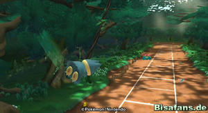 Zu Bisaflor geht es nach links hinter der Brücke. Am Tor steht Glibunkel, der dich jedoch nach einem kurzen Gespräch für 200 Beeren passieren lässt. Gehe anschließend durch das Tor um Bisaflor und sein Minispiel zu erreichen. Dort kommt es dann zu einem Gespräch. Bisaflor verlangt, dass du zuerst Glibunkel und Habitak in ihren Herausforderungen besiegst, bevor du bei ihm im Minispiel antreten und Endivie befreien darfst. Glibunkel steht am Tor und Habitak ist in der Mitte ganz rechts bei den Türmen. Glibunkel muss in einem Kampf besiegt werden, woraufhin es dein Freund wird und Sichlor in der Zone erscheint. Bei Habitak machst du deine erste Turnübung, bevor auch Habitak dein Freund wird. Kehre dann wieder zu Bisaflor zurück. Er wird dir nun erlauben sein Minispiel zu spielen.