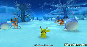 Vom Eingang aus kannst du schon Azurill und Lahmus sehen. Diese reden von einem Streit zwischen Garados und Impergator, der dazu führte, dass die Insel-Verbindungsbrücken zerstört wurden. Wir erhalten von den beiden den Tipp, dass wir mit Lapras reden sollten, wenn wir über das Meer zur Eiszone wollen. Nach dem Gespräch sind die beiden dann erst einmal weg und wir können das Gebiet erforschen.