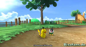 Nach dem Betreten des Treffpunkts, gibt es neue Tipps von Plaudagei. So ist der Treffpunkt zentral gelegen zwischen den fünf Zonen des PokéParks. Hier lernst du auch einige wichtige Pokémon kennen, die dir noch öfters hilfreich sein werden. Auch Endivie wird dich in der Mitte des Platzes ansprechen. Sie will das Baumhaus ausbauen, wenn du mehr Freunde gewinnst.