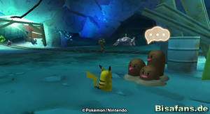 Nach dem Kampf darfst du alle Kisten öffnen. Dabei wirst du aber eine überraschung erleben... Denn statt dem Schienenstück findest du ein Digda! Dieses hat das Schienenstück an den sichersten Ort der Höhlenzone gebracht - direkt unterhalb von Relaxo ^_^ Relaxo findest du in einer Vertiefung gegenüber des Beerenlagers (genauso wie den Drifzepeli-Halt). Sprichst du Relaxo an, wird dieses aber eine große Beere verlangen, damit es den Platz räumt. Die besagte Beere findest du in einer der Kisten im Beerenlager...