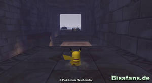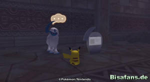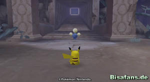 Hast du das Minispiel von Absol geschafft, erhältst du den 12. Prismensplitter und kannst den Weg an Hoppspross vorbei nun passieren. Dabei wird Hoppspross übrigens dein Freund ;) Direkt hinter Hoppspross musst du wieder einmal einen Hebel rammen, damit du die Schlucht überqueren kannst. Ramme den Hebel auf der anderen Seite unbedingt an, damit die Brücke sich wieder in eine andere Position dreht. Du wirst dies bald brauchen und sparst dir so ein wenig Lauferei ;) Gehe dahinter direkt die Rampe hoch - der untere Weg führt nur zu blockierten Durchgängen.