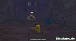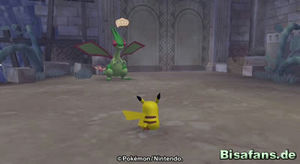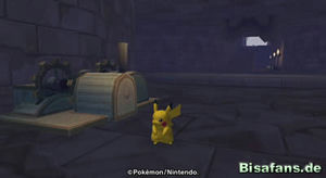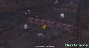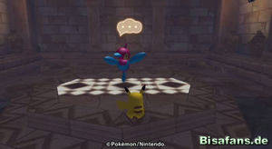 Nachdem du die erste Losung "Liebe" kennst, musst du wieder zurück zu Bronzel. Dieser war in etwa da, wo auch Pionskora war (im größeren quadratischen Raum in der oberen Mitte der Minikarte). Bronzel wird dich passieren lassen. Direkt hinter Bronzel musst du dann auch schon gegen Elevoltek im Kampf antreten. Gehe danach die "Pyramide" hoch und betätige den Hebel um in den nächsten Raum zu gelangen.