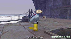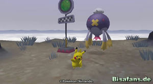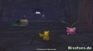 Die Mindestleistung beträgt 16 Sekunden. Ziel des Spieles ist es so schnell wie möglich das Ziel zu erreichen. Im Prinzip funktioniert dieses Spiel wie das von Bisasam und Zwirrfinst, doch musst du hier bei Hindernissen den Button 2 drücken um diese zu überspringen. Schlapor, welches in der Gegend hier zu finden ist, ist für dieses Minispiel besonders gut geeignet. Pikachu und Endivie sind etwas langsam um die 16 Sekunden zu knacken. Man kann es mit den beiden zwar auch schaffen, doch darfst du dann gegen kein Hindernis krachen! Man braucht 1-2 Spiele um das Timing zum Springen herauszufinden, da man recht früh vor dem Hindernis drücken muss. Beachte auch, dass dein Tempo nach erfolgreichem Hürdensprung immer steigt.