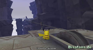 Steige danach in die Gondel und fahre damit bis du bei Togekiss ankommst. Du musst nun die Turnübung von Togekiss meistern um von ihm die zweite Losung "Frieden" zu erfahren. Die übung selbst ist nicht zu schwer. Lasse dir ruhig Zeit und drehe die Kamera immer so, dass du geradeaus springen kannst. Dann sollte es zu schaffen sein.