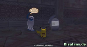 Togekiss verrät uns auch den Ort, wo wir die 3. und letzte Losung erfahren. Diese kennt Relaxo aus der Höhlenzone. Du musst nun also zurück und am besten mit Drifzepeli in die Höhlenzone zu Relaxo fliegen. Du findest Relaxo in seiner Vertiefung unweit des Drifzepeli-Halts (gegenüber vom Beerenlager). Es verrät dir direkt die 3. Losung "Regenbogen". Da du nun alle Losungen kennst, geht es direkt wieder zurück. Nutze am besten dem Drifzepeli-Halt, da du dann in der Steinzone auch direkt bei Libelldra landest. Dieser musst du die drei Losungen ja geben um den Weg hinter ihr passieren zu dürfen.